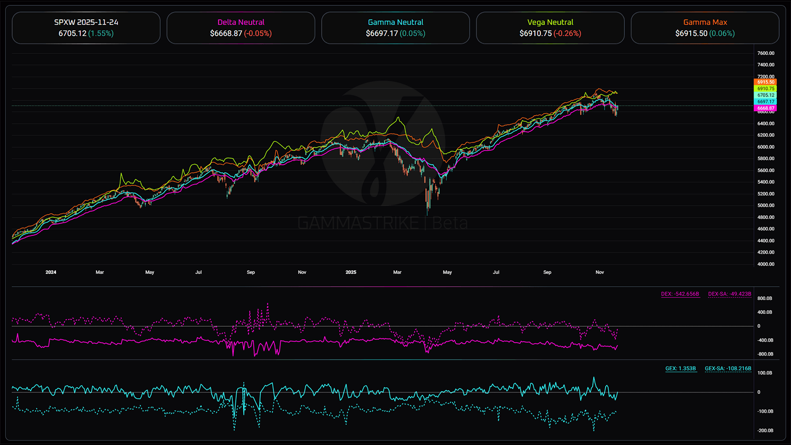 Keep an eye on intraday options flows. Gammastrike provides live delta and gamma exposure, put/call premium and put/call ratios all at the same time.