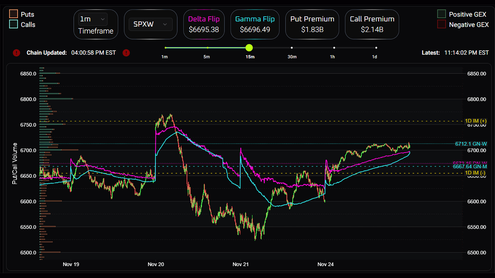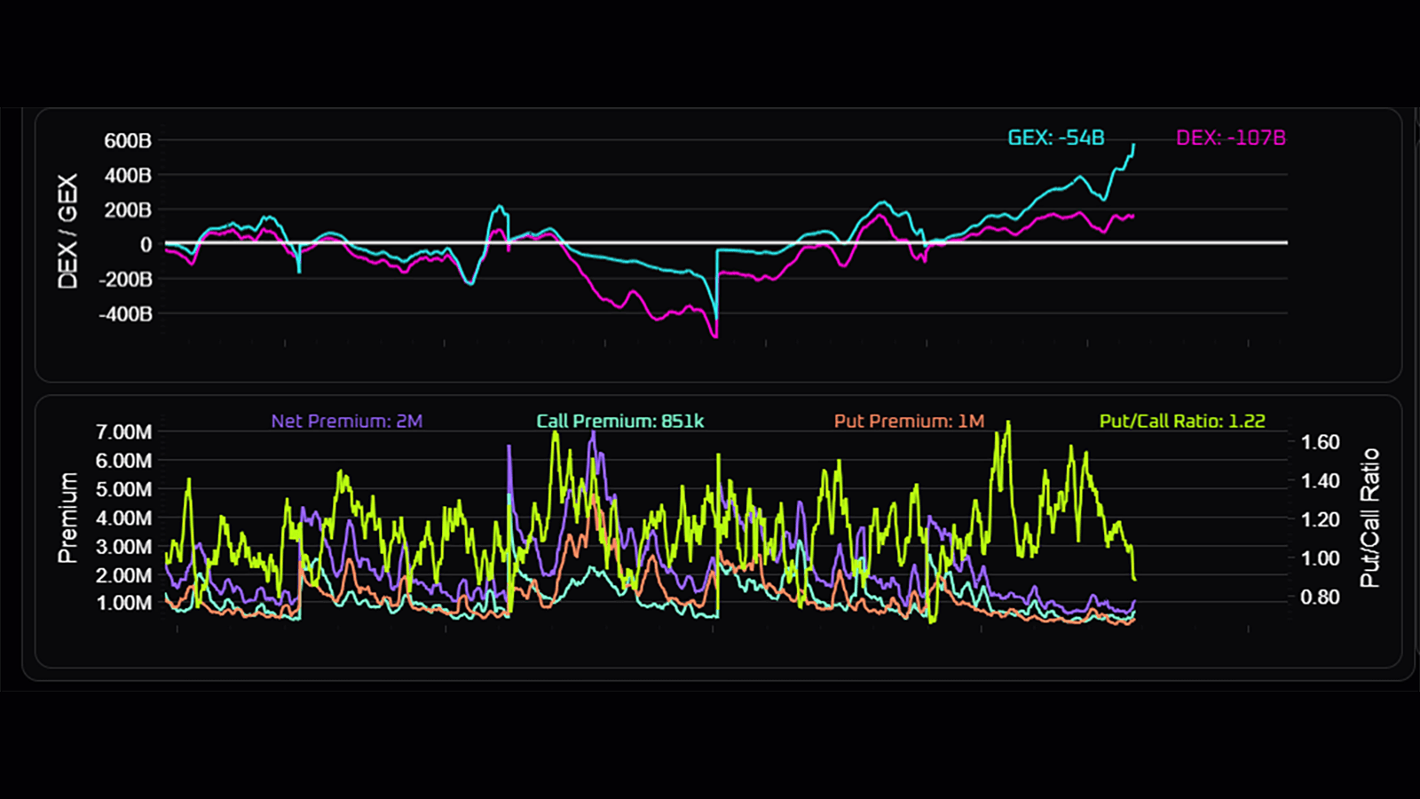 Live Data - DEX/GEX, Options Premiums and Put/Call Ratio